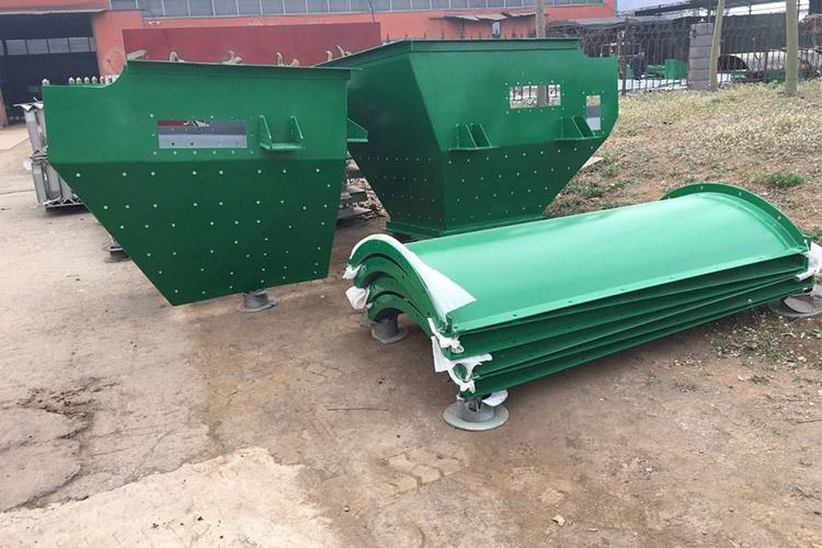 導(dǎo)料槽可分為加防溢裙板型和全封閉型;如果是全密封型,由上中下三部分組成,中間側(cè)板與輸送機(jī)機(jī)架連接,為固定部分,上頂蓋及下底板分別同側(cè)板通過(guò)螺栓連接,可很方便的進(jìn)行拆卸,以便安裝和維修。