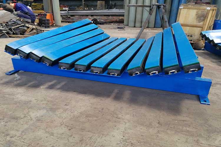 用于輸送帶在物料裝載及落料點的減震保護。緩沖床是礦業(yè)輸送皮帶機專用緩沖設備,具有抗沖擊、耐砸、阻燃、抗靜電、防腐蝕等特點,是替代緩沖托輥的較佳工具,實現(xiàn)了緩沖條與輸送帶的面接觸,有效防止了對輸送帶的損傷。